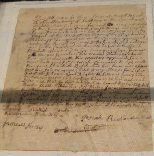 Keywords: Slave document, 1764 - Framingham History Center - DSC00395.JPG Slave document 1764 Exhibit in the Framingham History Center Edgell Memorial Library 3 Oak Street Framingham Massachusetts USA Photography was permitted in the museum without restriction I took this photograph 2011-07-09 14 17 11 Daderot Public domain Framingham History Center Slave trade in the United States Slavery in Massachusetts |