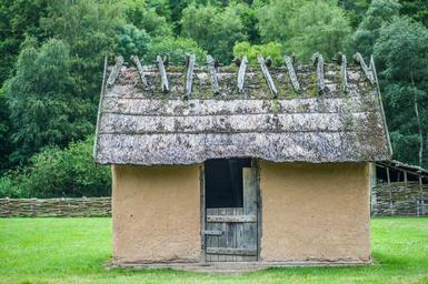 Keywords: slave house clay thatched roofs wood century forest wattle fence