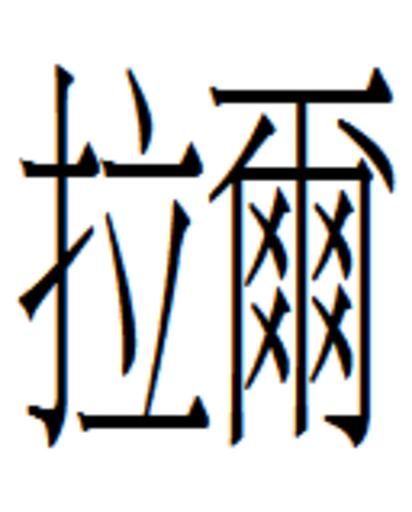 Keywords: Slavonic Chinese transcription character la-er.png en Chinese character used in the Slavonic transliteration of Biblical names Scheduled for inclusion in Unicode 10 0 at U+9FDC Image extracted from the BabelStone Han font 2016-05-14 own BabelStone other versions cc-zero Chinese characters used for Slavonic transliteration |