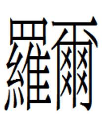 Keywords: Slavonic Chinese transcription character luo-er.png en Chinese character used in the Slavonic transliteration of Biblical names Scheduled for inclusion in Unicode 10 0 at U+9FE1 Image extracted from the BabelStone Han font 2016-05-14 own BabelStone other versions cc-zero Chinese characters used for Slavonic transliteration |