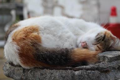 Keywords: sleeping cate cute white ginger fur homeless animal