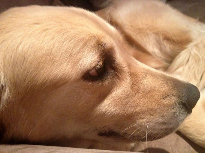 Keywords: sleepy dog lazy resting golden retriever mammal animal pet canine head