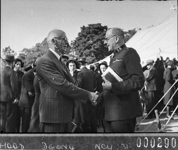Keywords: SLNSW 12773 Salvation Army officer shaking hands with a male civilian.jpg en Salvation Army officer shaking hands with a male civilian 11/4/1941 http //www acmssearch sl nsw gov au/search/itemDetailPaged cgi itemID 12773 item <br/>http //www acmssearch sl nsw gov au/search/itemDetailPaged cgi itemID 37473 album <br/>http //www acmssearch sl nsw gov au/search/itemDetailPaged cgi itemID 395018 collection Creator Sam Hood This image may be used freely without requesting permission The State Library of New South Wales http //www acmssearch sl nsw gov au/search/itemPopLarger cgi itemID 12773 requests acknowledgement that the image is from the collections of the State Library of NSW User 99of9/SLNSW_extra_metadata_template 12773 Salvation Army officer shaking hands with a male civilian Home and Away - 10397 11/4/1941 Photographs 32812 images copied from glass and cellulose nitrate photonegatives The Library first purchased a large collection of negatives from Gladys Hood in 1972 This collection which included nitrate negatives which have subsequently been copied at DG 0N4 NCY 28-61 was transferred to a videodisc in 1991 and each image indexed individually Ted Hood assisted with the indexing; images were also identified using surviving studio registers The videodisc known as the Home Away disc or simply the Hood collection was digitised in 1996 and mounted on the Internet with upgraded index records via the online catalogue in December 1998 Purchased from Gladys Hood 1972 Copyright restrictions may apply - Photographs in this collection created before 1955 are all out of copyright Photographs created after 1955 are in copyright for the life of creator plus 70 years ; Please acknowledge - Mitchell Library State Library of New South Wales and Courtesy copyright holder 395018 Sam Hood photographic collection 1916-ca 1955 Approximately 44 800 negatives ; 7 309 photographic prints ; 3 boxes of textual material ; 6 film reels The Library first purchased a large collection of negatives from Gladys Hood in 1972 This collection which included nitrate negatives which have subsequently been copied at DG 0N4 NCY 28-61 was transferred to a videodisc in 1991 and each image indexed individually Ted Hood assisted with the indexing; images were also identified using surviving studio registers The videodisc known as the Home Away disc or simply the Hood collection was digitised in 1996 and mounted on the Internet with upgraded index records via the online catalogue in December 1998 ; Another collection from Sam Hood's studio was purchased in 1993 from Gladys Hood's descendants This comprised 7300 photoprints PXE 789 and ca 12000 negatives ON 204 Digitisation of important photographs in PXE 789 began Mar 2002 but ON 204 has not been digitised and must be viewed at the Library Samuel J Hood's 1872-1953 claimed to have been born 1870 but the South Australian Birth Index gives date as 20 August 1872 His career as a photographer began in the 1880s ; He ran a successful business in ships portraits these negatives are now held by the Australian National Maritime Museum Sydney and portraits of people in the late nineteenth - early twentieth century The State Library has little representation of this period In 1918 he acquired the Dalny Studio at 124 Pitt Street and began to expand his business into press photography providing photographs for the Sydney Mail the Australasian the Daily Guardian the Daily Telegraph Pictorial the Labor Daily the Sun the Daily News and the Sydney Morning Herald Press photography increasingly came to dominate his business and in 1934 he joined the Labor Daily for a short time as a full-time photographer engaging other staff to look after his studio ; By the mid-1930s most newspapers employed their own photographers and Hood's commissions from the papers began to decline Hood sought other kinds of commissions and won a number of long term advertising and commercial contracts He contributed a number of photographs of Sydney buildings and streets to Building Construction and Australasian Engineer during the late 1930s and early 1940s Hood also had extensive contacts in the entertainment industry who called upon him to document celebrity events and stars as well as theatre advertising Throughout his career he worked at the stock-in-trade for commercial photographers portraits weddings and even funerals ; A number of photographers worked for Dalny Studio some of these include Ernie Bowen Gus Daley Jack Lazern Lethington Maitland as well as Sam's own children Gladys and Ted ; For detailed biographical information about photographer Sam Hood see Sydney exposures through the eyes of Sam Hood his Studio 1925-1950 / Alan Davies Sydney State Library of New South Wales 1991 Out of copyright - Created before 1955 Photographs ; Please acknowledge - Mitchell Library State Library of New South Wales advertising photography; commercial photography; photojournalism 395018 Original item no NCY31/290 yes no PD-Australia PD-1996 Australia Images from the State Library of NSW album 37473 SLNSW media uploaded by User 99of9 Photographs by Sam Hood People of Australia 1941 in Australia Salvation Army
