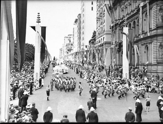 Keywords: SLNSW 24720 150th Anniversary celebrations procession through streets.jpg en 150th Anniversary celebrations procession through streets circa 1925 1957 http //www acmssearch sl nsw gov au/search/itemDetailPaged cgi itemID 24720 item <br/>http //www acmssearch sl nsw gov au/search/itemDetailPaged cgi itemID 37473 album <br/>http //www acmssearch sl nsw gov au/search/itemDetailPaged cgi itemID 395018 collection Creator Sam Hood This image may be used freely without requesting permission The State Library of New South Wales http //www acmssearch sl nsw gov au/search/itemPopLarger cgi itemID 24720 requests acknowledgement that the image is from the collections of the State Library of NSW Photographs 32812 images copied from glass and cellulose nitrate photonegatives The Library first purchased a large collection of negatives from Gladys Hood in 1972 This collection which included nitrate negatives which have subsequently been copied at DG 0N4 NCY 28-61 was transferred to a videodisc in 1991 and each image indexed individually Ted Hood assisted with the indexing; images were also identified using surviving studio registers The videodisc known as the Home Away disc or simply the Hood collection was digitised in 1996 and mounted on the Internet with upgraded index records via the online catalogue in December 1998 Purchased from Gladys Hood 1972 Copyright restrictions may apply - Photographs in this collection created before 1955 are all out of copyright Photographs created after 1955 are in copyright for the life of creator plus 70 years ; Please acknowledge - Mitchell Library State Library of New South Wales and Courtesy copyright holder 395018 Sam Hood photographic collection 1916-ca 1955 Approximately 44 800 negatives ; 7 309 photographic prints ; 3 boxes of textual material ; 6 film reels The Library first purchased a large collection of negatives from Gladys Hood in 1972 This collection which included nitrate negatives which have subsequently been copied at DG 0N4 NCY 28-61 was transferred to a videodisc in 1991 and each image indexed individually Ted Hood assisted with the indexing; images were also identified using surviving studio registers The videodisc known as the Home Away disc or simply the Hood collection was digitised in 1996 and mounted on the Internet with upgraded index records via the online catalogue in December 1998 ; Another collection from Sam Hood's studio was purchased in 1993 from Gladys Hood's descendants This comprised 7300 photoprints PXE 789 and ca 12000 negatives ON 204 Digitisation of important photographs in PXE 789 began Mar 2002 but ON 204 has not been digitised and must be viewed at the Library Samuel J Hood's 1872-1953 claimed to have been born 1870 but the South Australian Birth Index gives date as 20 August 1872 His career as a photographer began in the 1880s ; He ran a successful business in ships portraits these negatives are now held by the Australian National Maritime Museum Sydney and portraits of people in the late nineteenth - early twentieth century The State Library has little representation of this period In 1918 he acquired the Dalny Studio at 124 Pitt Street and began to expand his business into press photography providing photographs for the Sydney Mail the Australasian the Daily Guardian the Daily Telegraph Pictorial the Labor Daily the Sun the Daily News and the Sydney Morning Herald Press photography increasingly came to dominate his business and in 1934 he joined the Labor Daily for a short time as a full-time photographer engaging other staff to look after his studio ; By the mid-1930s most newspapers employed their own photographers and Hood's commissions from the papers began to decline Hood sought other kinds of commissions and won a number of long term advertising and commercial contracts He contributed a number of photographs of Sydney buildings and streets to Building Construction and Australasian Engineer during the late 1930s and early 1940s Hood also had extensive contacts in the entertainment industry who called upon him to document celebrity events and stars as well as theatre advertising Throughout his career he worked at the stock-in-trade for commercial photographers portraits weddings and even funerals ; A number of photographers worked for Dalny Studio some of these include Ernie Bowen Gus Daley Jack Lazern Lethington Maitland as well as Sam's own children Gladys and Ted ; For detailed biographical information about photographer Sam Hood see Sydney exposures through the eyes of Sam Hood his Studio 1925-1950 / Alan Davies Sydney State Library of New South Wales 1991 Out of copyright - Created before 1955 Photographs ; Please acknowledge - Mitchell Library State Library of New South Wales advertising photography; commercial photography; photojournalism 395018 Original item no NCY41/394 yes no PD-Australia PD-1996 Australia Images from the State Library of NSW album 37473 SLNSW media uploaded by User 99of9 Photographs by Sam Hood |