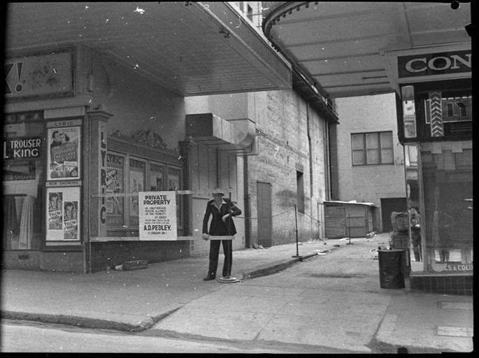 Keywords: SLNSW 26541 AD Pedley Private property sign Lyric Lane taken for Union Theatres.jpg en A D Pedley Private property sign Lyric Lane taken for Union Theatres 6/1/1946 http //www acmssearch sl nsw gov au/search/itemDetailPaged cgi itemID 26541 item <br/>http //www acmssearch sl nsw gov au/search/itemDetailPaged cgi itemID 37473 album <br/>http //www acmssearch sl nsw gov au/search/itemDetailPaged cgi itemID 395018 collection Creator Sam Hood This image may be used freely without requesting permission The State Library of New South Wales http //www acmssearch sl nsw gov au/search/itemPopLarger cgi itemID 26541 requests acknowledgement that the image is from the collections of the State Library of NSW Photographs 32812 images copied from glass and cellulose nitrate photonegatives The Library first purchased a large collection of negatives from Gladys Hood in 1972 This collection which included nitrate negatives which have subsequently been copied at DG 0N4 NCY 28-61 was transferred to a videodisc in 1991 and each image indexed individually Ted Hood assisted with the indexing; images were also identified using surviving studio registers The videodisc known as the Home Away disc or simply the Hood collection was digitised in 1996 and mounted on the Internet with upgraded index records via the online catalogue in December 1998 Purchased from Gladys Hood 1972 Copyright restrictions may apply - Photographs in this collection created before 1955 are all out of copyright Photographs created after 1955 are in copyright for the life of creator plus 70 years ; Please acknowledge - Mitchell Library State Library of New South Wales and Courtesy copyright holder 395018 Sam Hood photographic collection 1916-ca 1955 Approximately 44 800 negatives ; 7 309 photographic prints ; 3 boxes of textual material ; 6 film reels The Library first purchased a large collection of negatives from Gladys Hood in 1972 This collection which included nitrate negatives which have subsequently been copied at DG 0N4 NCY 28-61 was transferred to a videodisc in 1991 and each image indexed individually Ted Hood assisted with the indexing; images were also identified using surviving studio registers The videodisc known as the Home Away disc or simply the Hood collection was digitised in 1996 and mounted on the Internet with upgraded index records via the online catalogue in December 1998 ; Another collection from Sam Hood's studio was purchased in 1993 from Gladys Hood's descendants This comprised 7300 photoprints PXE 789 and ca 12000 negatives ON 204 Digitisation of important photographs in PXE 789 began Mar 2002 but ON 204 has not been digitised and must be viewed at the Library Samuel J Hood's 1872-1953 claimed to have been born 1870 but the South Australian Birth Index gives date as 20 August 1872 His career as a photographer began in the 1880s ; He ran a successful business in ships portraits these negatives are now held by the Australian National Maritime Museum Sydney and portraits of people in the late nineteenth - early twentieth century The State Library has little representation of this period In 1918 he acquired the Dalny Studio at 124 Pitt Street and began to expand his business into press photography providing photographs for the Sydney Mail the Australasian the Daily Guardian the Daily Telegraph Pictorial the Labor Daily the Sun the Daily News and the Sydney Morning Herald Press photography increasingly came to dominate his business and in 1934 he joined the Labor Daily for a short time as a full-time photographer engaging other staff to look after his studio ; By the mid-1930s most newspapers employed their own photographers and Hood's commissions from the papers began to decline Hood sought other kinds of commissions and won a number of long term advertising and commercial contracts He contributed a number of photographs of Sydney buildings and streets to Building Construction and Australasian Engineer during the late 1930s and early 1940s Hood also had extensive contacts in the entertainment industry who called upon him to document celebrity events and stars as well as theatre advertising Throughout his career he worked at the stock-in-trade for commercial photographers portraits weddings and even funerals ; A number of photographers worked for Dalny Studio some of these include Ernie Bowen Gus Daley Jack Lazern Lethington Maitland as well as Sam's own children Gladys and Ted ; For detailed biographical information about photographer Sam Hood see Sydney exposures through the eyes of Sam Hood his Studio 1925-1950 / Alan Davies Sydney State Library of New South Wales 1991 Out of copyright - Created before 1955 Photographs ; Please acknowledge - Mitchell Library State Library of New South Wales advertising photography; commercial photography; photojournalism 395018 Original item no NCY45/692 yes no PD-Australia PD-1996 Australia Images from the State Library of NSW album 37473 SLNSW media uploaded by User 99of9 Photographs by Sam Hood |