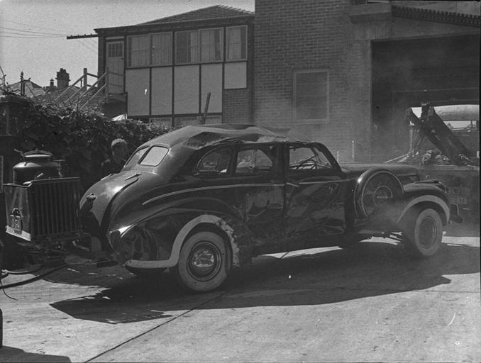 | Keywords: SLNSW 29343 Smashed Hoyts Buick 41 840 1940 Sedan with headlight blackouts and rear charcoal gas producer Stanmore.jpg en Smashed Hoyts' Buick 41 - 8/40 1940 Sedan with headlight blackouts and rear charcoal gas producer Stanmore 6/1/1943 http //www acmssearch sl nsw gov au/search/itemDetailPaged cgi itemID 29343 item <br/>http //www acmssearch sl nsw gov au/search/itemDetailPaged cgi itemID 37473 album <br/>http //www acmssearch sl nsw gov au/search/itemDetailPaged cgi itemID 395018 collection Creator Sam Hood This image may be used freely without requesting permission The State Library of New South Wales http //www acmssearch sl nsw gov au/search/itemPopLarger cgi itemID 29343 requests acknowledgement that the image is from the collections of the State Library of NSW Photographs 32812 images copied from glass and cellulose nitrate photonegatives The Library first purchased a large collection of negatives from Gladys Hood in 1972 This collection which included nitrate negatives which have subsequently been copied at DG 0N4 NCY 28-61 was transferred to a videodisc in 1991 and each image indexed individually Ted Hood assisted with the indexing; images were also identified using surviving studio registers The videodisc known as the Home Away disc or simply the Hood collection was digitised in 1996 and mounted on the Internet with upgraded index records via the online catalogue in December 1998 Purchased from Gladys Hood 1972 Copyright restrictions may apply - Photographs in this collection created before 1955 are all out of copyright Photographs created after 1955 are in copyright for the life of creator plus 70 years ; Please acknowledge - Mitchell Library State Library of New South Wales and Courtesy copyright holder 395018 Sam Hood photographic collection 1916-ca 1955 Approximately 44 800 negatives ; 7 309 photographic prints ; 3 boxes of textual material ; 6 film reels The Library first purchased a large collection of negatives from Gladys Hood in 1972 This collection which included nitrate negatives which have subsequently been copied at DG 0N4 NCY 28-61 was transferred to a videodisc in 1991 and each image indexed individually Ted Hood assisted with the indexing; images were also identified using surviving studio registers The videodisc known as the Home Away disc or simply the Hood collection was digitised in 1996 and mounted on the Internet with upgraded index records via the online catalogue in December 1998 ; Another collection from Sam Hood's studio was purchased in 1993 from Gladys Hood's descendants This comprised 7300 photoprints PXE 789 and ca 12000 negatives ON 204 Digitisation of important photographs in PXE 789 began Mar 2002 but ON 204 has not been digitised and must be viewed at the Library Samuel J Hood's 1872-1953 claimed to have been born 1870 but the South Australian Birth Index gives date as 20 August 1872 His career as a photographer began in the 1880s ; He ran a successful business in ships portraits these negatives are now held by the Australian National Maritime Museum Sydney and portraits of people in the late nineteenth - early twentieth century The State Library has little representation of this period In 1918 he acquired the Dalny Studio at 124 Pitt Street and began to expand his business into press photography providing photographs for the Sydney Mail the Australasian the Daily Guardian the Daily Telegraph Pictorial the Labor Daily the Sun the Daily News and the Sydney Morning Herald Press photography increasingly came to dominate his business and in 1934 he joined the Labor Daily for a short time as a full-time photographer engaging other staff to look after his studio ; By the mid-1930s most newspapers employed their own photographers and Hood's commissions from the papers began to decline Hood sought other kinds of commissions and won a number of long term advertising and commercial contracts He contributed a number of photographs of Sydney buildings and streets to Building Construction and Australasian Engineer during the late 1930s and early 1940s Hood also had extensive contacts in the entertainment industry who called upon him to document celebrity events and stars as well as theatre advertising Throughout his career he worked at the stock-in-trade for commercial photographers portraits weddings and even funerals ; A number of photographers worked for Dalny Studio some of these include Ernie Bowen Gus Daley Jack Lazern Lethington Maitland as well as Sam's own children Gladys and Ted ; For detailed biographical information about photographer Sam Hood see Sydney exposures through the eyes of Sam Hood his Studio 1925-1950 / Alan Davies Sydney State Library of New South Wales 1991 Out of copyright - Created before 1955 Photographs ; Please acknowledge - Mitchell Library State Library of New South Wales advertising photography; commercial photography; photojournalism 395018 Original item no NCY50/23 yes no PD-Australia PD-1996 Australia Images from the State Library of NSW album 37473 SLNSW media uploaded by User 99of9 Photographs by Sam Hood Automobiles in Australia |