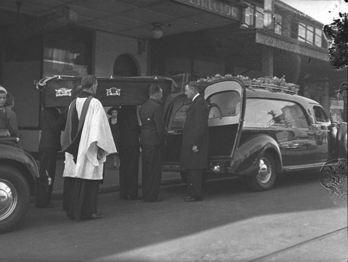 Keywords: SLNSW 29816 Funeral Medcalfs Royal Dutch Packet Co.jpg en Funeral Medcalf's Royal Dutch Packet Co 21/4/1944 http //www acmssearch sl nsw gov au/search/itemDetailPaged cgi itemID 29816 item <br/>http //www acmssearch sl nsw gov au/search/itemDetailPaged cgi itemID 37473 album <br/>http //www acmssearch sl nsw gov au/search/itemDetailPaged cgi itemID 395018 collection Creator Sam Hood This image may be used freely without requesting permission The State Library of New South Wales http //www acmssearch sl nsw gov au/search/itemPopLarger cgi itemID 29816 requests acknowledgement that the image is from the collections of the State Library of NSW Photographs 32812 images copied from glass and cellulose nitrate photonegatives The Library first purchased a large collection of negatives from Gladys Hood in 1972 This collection which included nitrate negatives which have subsequently been copied at DG 0N4 NCY 28-61 was transferred to a videodisc in 1991 and each image indexed individually Ted Hood assisted with the indexing; images were also identified using surviving studio registers The videodisc known as the Home Away disc or simply the Hood collection was digitised in 1996 and mounted on the Internet with upgraded index records via the online catalogue in December 1998 Purchased from Gladys Hood 1972 Copyright restrictions may apply - Photographs in this collection created before 1955 are all out of copyright Photographs created after 1955 are in copyright for the life of creator plus 70 years ; Please acknowledge - Mitchell Library State Library of New South Wales and Courtesy copyright holder 395018 Sam Hood photographic collection 1916-ca 1955 Approximately 44 800 negatives ; 7 309 photographic prints ; 3 boxes of textual material ; 6 film reels The Library first purchased a large collection of negatives from Gladys Hood in 1972 This collection which included nitrate negatives which have subsequently been copied at DG 0N4 NCY 28-61 was transferred to a videodisc in 1991 and each image indexed individually Ted Hood assisted with the indexing; images were also identified using surviving studio registers The videodisc known as the Home Away disc or simply the Hood collection was digitised in 1996 and mounted on the Internet with upgraded index records via the online catalogue in December 1998 ; Another collection from Sam Hood's studio was purchased in 1993 from Gladys Hood's descendants This comprised 7300 photoprints PXE 789 and ca 12000 negatives ON 204 Digitisation of important photographs in PXE 789 began Mar 2002 but ON 204 has not been digitised and must be viewed at the Library Samuel J Hood's 1872-1953 claimed to have been born 1870 but the South Australian Birth Index gives date as 20 August 1872 His career as a photographer began in the 1880s ; He ran a successful business in ships portraits these negatives are now held by the Australian National Maritime Museum Sydney and portraits of people in the late nineteenth - early twentieth century The State Library has little representation of this period In 1918 he acquired the Dalny Studio at 124 Pitt Street and began to expand his business into press photography providing photographs for the Sydney Mail the Australasian the Daily Guardian the Daily Telegraph Pictorial the Labor Daily the Sun the Daily News and the Sydney Morning Herald Press photography increasingly came to dominate his business and in 1934 he joined the Labor Daily for a short time as a full-time photographer engaging other staff to look after his studio ; By the mid-1930s most newspapers employed their own photographers and Hood's commissions from the papers began to decline Hood sought other kinds of commissions and won a number of long term advertising and commercial contracts He contributed a number of photographs of Sydney buildings and streets to Building Construction and Australasian Engineer during the late 1930s and early 1940s Hood also had extensive contacts in the entertainment industry who called upon him to document celebrity events and stars as well as theatre advertising Throughout his career he worked at the stock-in-trade for commercial photographers portraits weddings and even funerals ; A number of photographers worked for Dalny Studio some of these include Ernie Bowen Gus Daley Jack Lazern Lethington Maitland as well as Sam's own children Gladys and Ted ; For detailed biographical information about photographer Sam Hood see Sydney exposures through the eyes of Sam Hood his Studio 1925-1950 / Alan Davies Sydney State Library of New South Wales 1991 Out of copyright - Created before 1955 Photographs ; Please acknowledge - Mitchell Library State Library of New South Wales advertising photography; commercial photography; photojournalism 395018 Original item no NCY50/295 yes no PD-Australia PD-1996 Australia Images from the State Library of NSW album 37473 SLNSW media uploaded by User 99of9 Photographs by Sam Hood |