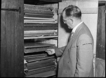 Keywords: SLNSW 34558 Town Clerk Mr Burges with paintings Pote Collection.jpg en Town Clerk Mr Burges with paintings Pote Collection 23/5/1956 http //www acmssearch sl nsw gov au/search/itemDetailPaged cgi itemID 34558 item <br/>http //www acmssearch sl nsw gov au/search/itemDetailPaged cgi itemID 37473 album <br/>http //www acmssearch sl nsw gov au/search/itemDetailPaged cgi itemID 395018 collection Creator Sam Hood This image may be used freely without requesting permission The State Library of New South Wales http //www acmssearch sl nsw gov au/search/itemPopLarger cgi itemID 34558 requests acknowledgement that the image is from the collections of the State Library of NSW Photographs 32812 images copied from glass and cellulose nitrate photonegatives The Library first purchased a large collection of negatives from Gladys Hood in 1972 This collection which included nitrate negatives which have subsequently been copied at DG 0N4 NCY 28-61 was transferred to a videodisc in 1991 and each image indexed individually Ted Hood assisted with the indexing; images were also identified using surviving studio registers The videodisc known as the Home Away disc or simply the Hood collection was digitised in 1996 and mounted on the Internet with upgraded index records via the online catalogue in December 1998 Purchased from Gladys Hood 1972 Copyright restrictions may apply - Photographs in this collection created before 1955 are all out of copyright Photographs created after 1955 are in copyright for the life of creator plus 70 years ; Please acknowledge - Mitchell Library State Library of New South Wales and Courtesy copyright holder 395018 Sam Hood photographic collection 1916-ca 1955 Approximately 44 800 negatives ; 7 309 photographic prints ; 3 boxes of textual material ; 6 film reels The Library first purchased a large collection of negatives from Gladys Hood in 1972 This collection which included nitrate negatives which have subsequently been copied at DG 0N4 NCY 28-61 was transferred to a videodisc in 1991 and each image indexed individually Ted Hood assisted with the indexing; images were also identified using surviving studio registers The videodisc known as the Home Away disc or simply the Hood collection was digitised in 1996 and mounted on the Internet with upgraded index records via the online catalogue in December 1998 ; Another collection from Sam Hood's studio was purchased in 1993 from Gladys Hood's descendants This comprised 7300 photoprints PXE 789 and ca 12000 negatives ON 204 Digitisation of important photographs in PXE 789 began Mar 2002 but ON 204 has not been digitised and must be viewed at the Library Samuel J Hood's 1872-1953 claimed to have been born 1870 but the South Australian Birth Index gives date as 20 August 1872 His career as a photographer began in the 1880s ; He ran a successful business in ships portraits these negatives are now held by the Australian National Maritime Museum Sydney and portraits of people in the late nineteenth - early twentieth century The State Library has little representation of this period In 1918 he acquired the Dalny Studio at 124 Pitt Street and began to expand his business into press photography providing photographs for the Sydney Mail the Australasian the Daily Guardian the Daily Telegraph Pictorial the Labor Daily the Sun the Daily News and the Sydney Morning Herald Press photography increasingly came to dominate his business and in 1934 he joined the Labor Daily for a short time as a full-time photographer engaging other staff to look after his studio ; By the mid-1930s most newspapers employed their own photographers and Hood's commissions from the papers began to decline Hood sought other kinds of commissions and won a number of long term advertising and commercial contracts He contributed a number of photographs of Sydney buildings and streets to Building Construction and Australasian Engineer during the late 1930s and early 1940s Hood also had extensive contacts in the entertainment industry who called upon him to document celebrity events and stars as well as theatre advertising Throughout his career he worked at the stock-in-trade for commercial photographers portraits weddings and even funerals ; A number of photographers worked for Dalny Studio some of these include Ernie Bowen Gus Daley Jack Lazern Lethington Maitland as well as Sam's own children Gladys and Ted ; For detailed biographical information about photographer Sam Hood see Sydney exposures through the eyes of Sam Hood his Studio 1925-1950 / Alan Davies Sydney State Library of New South Wales 1991 Out of copyright - Created before 1955 Photographs ; Please acknowledge - Mitchell Library State Library of New South Wales advertising photography; commercial photography; photojournalism 395018 Original item no NCY55/680 yes no PD-Australia PD-1996 Australia Images from the State Library of NSW album 37473 SLNSW media uploaded by User 99of9 Photographs by Sam Hood |