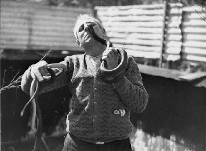 Keywords: SLNSW 42401 George Cann eyeball to eyeball with a black snake.jpg en George Cann eyeball to eyeball with a black snake 1934-09-05 http //www acmssearch sl nsw gov au/search/itemDetailPaged cgi itemID 42401 item <br/>http //www acmssearch sl nsw gov au/search/itemDetailPaged cgi itemID 37473 album <br/>http //www acmssearch sl nsw gov au/search/itemDetailPaged cgi itemID 395018 collection Hood Ted 1911-2000 This image may be used freely without requesting permission The State Library of New South Wales http //www acmssearch sl nsw gov au/search/itemPopLarger cgi itemID 42401 requests acknowledgement that the image is from the collections of the State Library of NSW Photographs 32812 images copied from glass and cellulose nitrate photonegatives The Library first purchased a large collection of negatives from Gladys Hood in 1972 This collection which included nitrate negatives which have subsequently been copied at DG 0N4 NCY 28-61 was transferred to a videodisc in 1991 and each image indexed individually Ted Hood assisted with the indexing; images were also identified using surviving studio registers The videodisc known as the Home Away disc or simply the Hood collection was digitised in 1996 and mounted on the Internet with upgraded index records via the online catalogue in December 1998 Purchased from Gladys Hood 1972 Copyright restrictions may apply - Photographs in this collection created before 1955 are all out of copyright Photographs created after 1955 are in copyright for the life of creator plus 70 years ; Please acknowledge - Mitchell Library State Library of New South Wales and Courtesy copyright holder 395018 Sam Hood photographic collection 1916-ca 1955 Approximately 44 800 negatives ; 7 309 photographic prints ; 3 boxes of textual material ; 6 film reels The Library first purchased a large collection of negatives from Gladys Hood in 1972 This collection which included nitrate negatives which have subsequently been copied at DG 0N4 NCY 28-61 was transferred to a videodisc in 1991 and each image indexed individually Ted Hood assisted with the indexing; images were also identified using surviving studio registers The videodisc known as the Home Away disc or simply the Hood collection was digitised in 1996 and mounted on the Internet with upgraded index records via the online catalogue in December 1998 ; Another collection from Sam Hood's studio was purchased in 1993 from Gladys Hood's descendants This comprised 7300 photoprints PXE 789 and ca 12000 negatives ON 204 Digitisation of important photographs in PXE 789 began Mar 2002 but ON 204 has not been digitised and must be viewed at the Library Samuel J Hood's 1872-1953 claimed to have been born 1870 but the South Australian Birth Index gives date as 20 August 1872 His career as a photographer began in the 1880s ; He ran a successful business in ships portraits these negatives are now held by the Australian National Maritime Museum Sydney and portraits of people in the late nineteenth - early twentieth century The State Library has little representation of this period In 1918 he acquired the Dalny Studio at 124 Pitt Street and began to expand his business into press photography providing photographs for the Sydney Mail the Australasian the Daily Guardian the Daily Telegraph Pictorial the Labor Daily the Sun the Daily News and the Sydney Morning Herald Press photography increasingly came to dominate his business and in 1934 he joined the Labor Daily for a short time as a full-time photographer engaging other staff to look after his studio ; By the mid-1930s most newspapers employed their own photographers and Hood's commissions from the papers began to decline Hood sought other kinds of commissions and won a number of long term advertising and commercial contracts He contributed a number of photographs of Sydney buildings and streets to Building Construction and Australasian Engineer during the late 1930s and early 1940s Hood also had extensive contacts in the entertainment industry who called upon him to document celebrity events and stars as well as theatre advertising Throughout his career he worked at the stock-in-trade for commercial photographers portraits weddings and even funerals ; A number of photographers worked for Dalny Studio some of these include Ernie Bowen Gus Daley Jack Lazern Lethington Maitland as well as Sam's own children Gladys and Ted ; For detailed biographical information about photographer Sam Hood see Sydney exposures through the eyes of Sam Hood his Studio 1925-1950 / Alan Davies Sydney State Library of New South Wales 1991 Out of copyright - Created before 1955 Photographs ; Please acknowledge - Mitchell Library State Library of New South Wales advertising photography; commercial photography; photojournalism 395018 Original item no DG ON4/391 SLNSW-image 42401 yes PD-Australia PD-1996 Australia Images from the State Library of NSW album 37473 SLNSW media uploaded by User 99of9 Photographs by Sam Hood |