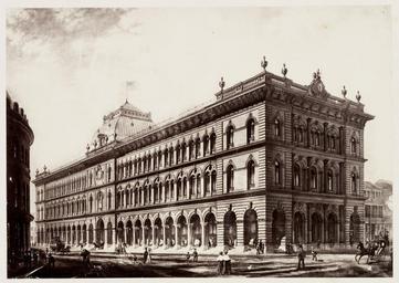 Keywords: SLNSW 479517 14 Post Office Taken from the Drawing.jpg en 14 Post Office Taken from the Drawing 1872 http //acms sl nsw gov au/item/itemDetailPaged aspx itemID 479517 item <br/>http //acms sl nsw gov au/item/itemDetailPaged aspx itemID 442753 album Pickering Charles Percy New South Wales Government Printing Office This image may be used freely without requesting permission The State Library of New South Wales http //www acmssearch sl nsw gov au/search/itemPopLarger cgi itemID 479517 requests acknowledgement that the image is from the collections of the State Library of NSW Albums 1 album containing 1 sepia 166 albumen photoprints ; 46 5 x 56 8 x 7 8 cm Bequeathed by D S Mitchell 1907 ; Transfer from Mitchell Library Printed Books X981 1/5 in 1985 Out of copyright - Created before 1955 Titles of photographs are printed on album page below image ; Printed on title page Photographs / of / Public and Other Buildings c / Taken by Authority of / The Government of New South Wales / At the request of / The Secretary of State for the Colonies / The negatives were taken by Mr Charles Pickering under the direction of James Barnet Esq Colonial Architect / New South Wales Thomas Richards Government Printer - 1872 A printed contents list follows the title page along with text on the port of Sydney ; Each album page has a protective flyleaf and there is a red-brown border drawn around each photograph ; On most album pages at the lower right of image appears a handwritten SH and a number in pencil This referes to the Government Printing Office file number with SH denoting John Sharkey who possessed a large number of Charles Pickering's negatives -- Reference Alan Clifford Government Printing Office 1985 ; Nos 131-140 were taken from Government House Tower; D S Mitchell signature on title page New South Wales Government Printing Office Clio ship ; Galatea Ship David Scott Mitchell Collection botanical gardens; bridges; cathedrals; churches; courthouses; harbours; islands; mortuaries; observatories; offices; official buildings; post offices; prisons; schools colleges; ships; statues; streetscapes Abattoirs Glebe Island N S W ; Australian Museum Sydney N S W ; Bank of Australasia Sydney N S W ; Darlinghurst Court House Darlinghurst N S W ; Darlinghurst Gaol N S W ; Exhibition Building Prince Alfred Park N S W ; Glebe Island Bridge Sydney N S W ; Government House Sydney N S W ; Lassetter Co 421 George Street Sydney N S W ; Mort's Wool Stores Circular Quay Sydney N S W ; Old Treasury Building Sydney N S W ; Royal Botanic Gardens Sydney N S W ; Stock Exchange Bridge Gresham Streets Sydney N S W ; Victoria Club Sydney N S W Album ID 823409 SLNSW-image 479517 PD-Australia PD-1996 Australia Images from the State Library of NSW album 442753 SLNSW media uploaded by User 99of9 General Post Office Sydney 1872 in Sydney Photographs by Charles Percy Pickering |