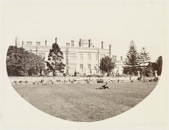 Keywords: SLNSW 479628 125 Government House Front SH 580583.jpg en 125 Government House Front SH 580-583 1872 http //acms sl nsw gov au/item/itemDetailPaged aspx itemID 479628 item <br/>http //acms sl nsw gov au/item/itemDetailPaged aspx itemID 442753 album Pickering Charles Percy New South Wales Government Printing Office This image may be used freely without requesting permission The State Library of New South Wales http //www acmssearch sl nsw gov au/search/itemPopLarger cgi itemID 479628 requests acknowledgement that the image is from the collections of the State Library of NSW Albums 1 album containing 1 sepia 166 albumen photoprints ; 46 5 x 56 8 x 7 8 cm Bequeathed by D S Mitchell 1907 ; Transfer from Mitchell Library Printed Books X981 1/5 in 1985 Out of copyright - Created before 1955 Titles of photographs are printed on album page below image ; Printed on title page Photographs / of / Public and Other Buildings c / Taken by Authority of / The Government of New South Wales / At the request of / The Secretary of State for the Colonies / The negatives were taken by Mr Charles Pickering under the direction of James Barnet Esq Colonial Architect / New South Wales Thomas Richards Government Printer - 1872 A printed contents list follows the title page along with text on the port of Sydney ; Each album page has a protective flyleaf and there is a red-brown border drawn around each photograph ; On most album pages at the lower right of image appears a handwritten SH and a number in pencil This referes to the Government Printing Office file number with SH denoting John Sharkey who possessed a large number of Charles Pickering's negatives -- Reference Alan Clifford Government Printing Office 1985 ; Nos 131-140 were taken from Government House Tower; D S Mitchell signature on title page New South Wales Government Printing Office Clio ship ; Galatea Ship David Scott Mitchell Collection botanical gardens; bridges; cathedrals; churches; courthouses; harbours; islands; mortuaries; observatories; offices; official buildings; post offices; prisons; schools colleges; ships; statues; streetscapes Abattoirs Glebe Island N S W ; Australian Museum Sydney N S W ; Bank of Australasia Sydney N S W ; Darlinghurst Court House Darlinghurst N S W ; Darlinghurst Gaol N S W ; Exhibition Building Prince Alfred Park N S W ; Glebe Island Bridge Sydney N S W ; Government House Sydney N S W ; Lassetter Co 421 George Street Sydney N S W ; Mort's Wool Stores Circular Quay Sydney N S W ; Old Treasury Building Sydney N S W ; Royal Botanic Gardens Sydney N S W ; Stock Exchange Bridge Gresham Streets Sydney N S W ; Victoria Club Sydney N S W Album ID 823409 SLNSW-image 479628 PD-Australia PD-1996 Australia Images from the State Library of NSW album 442753 SLNSW media uploaded by User 99of9 Government House Sydney 1872 in Sydney Photographs by Charles Percy Pickering |