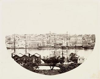 Keywords: SLNSW 479637 134 Sydney Panoramic SH 645647 657.jpg en 134 Sydney Panoramic SH 645-647 657 1872 http //acms sl nsw gov au/item/itemDetailPaged aspx itemID 479637 item <br/>http //acms sl nsw gov au/item/itemDetailPaged aspx itemID 442753 album Pickering Charles Percy New South Wales Government Printing Office This image may be used freely without requesting permission The State Library of New South Wales http //www acmssearch sl nsw gov au/search/itemPopLarger cgi itemID 479637 requests acknowledgement that the image is from the collections of the State Library of NSW Albums 1 album containing 1 sepia 166 albumen photoprints ; 46 5 x 56 8 x 7 8 cm Bequeathed by D S Mitchell 1907 ; Transfer from Mitchell Library Printed Books X981 1/5 in 1985 Out of copyright - Created before 1955 Titles of photographs are printed on album page below image ; Printed on title page Photographs / of / Public and Other Buildings c / Taken by Authority of / The Government of New South Wales / At the request of / The Secretary of State for the Colonies / The negatives were taken by Mr Charles Pickering under the direction of James Barnet Esq Colonial Architect / New South Wales Thomas Richards Government Printer - 1872 A printed contents list follows the title page along with text on the port of Sydney ; Each album page has a protective flyleaf and there is a red-brown border drawn around each photograph ; On most album pages at the lower right of image appears a handwritten SH and a number in pencil This referes to the Government Printing Office file number with SH denoting John Sharkey who possessed a large number of Charles Pickering's negatives -- Reference Alan Clifford Government Printing Office 1985 ; Nos 131-140 were taken from Government House Tower; D S Mitchell signature on title page New South Wales Government Printing Office Clio ship ; Galatea Ship David Scott Mitchell Collection botanical gardens; bridges; cathedrals; churches; courthouses; harbours; islands; mortuaries; observatories; offices; official buildings; post offices; prisons; schools colleges; ships; statues; streetscapes Abattoirs Glebe Island N S W ; Australian Museum Sydney N S W ; Bank of Australasia Sydney N S W ; Darlinghurst Court House Darlinghurst N S W ; Darlinghurst Gaol N S W ; Exhibition Building Prince Alfred Park N S W ; Glebe Island Bridge Sydney N S W ; Government House Sydney N S W ; Lassetter Co 421 George Street Sydney N S W ; Mort's Wool Stores Circular Quay Sydney N S W ; Old Treasury Building Sydney N S W ; Royal Botanic Gardens Sydney N S W ; Stock Exchange Bridge Gresham Streets Sydney N S W ; Victoria Club Sydney N S W Album ID 823409 SLNSW-image 479637 PD-Australia PD-1996 Australia Images from the State Library of NSW album 442753 SLNSW media uploaded by User 99of9 Buildings in Sydney 1872 in Sydney Photographs by Charles Percy Pickering |
