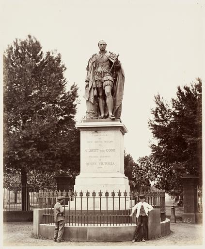 | Keywords: SLNSW 479657 153 Prince Alberts Statue.jpg en 153 Prince Albert's Statue 1872 http //acms sl nsw gov au/item/itemDetailPaged aspx itemID 479657 item <br/>http //acms sl nsw gov au/item/itemDetailPaged aspx itemID 442753 album Pickering Charles Percy New South Wales Government Printing Office This image may be used freely without requesting permission The State Library of New South Wales http //www acmssearch sl nsw gov au/search/itemPopLarger cgi itemID 479657 requests acknowledgement that the image is from the collections of the State Library of NSW Albums 1 album containing 1 sepia 166 albumen photoprints ; 46 5 x 56 8 x 7 8 cm Bequeathed by D S Mitchell 1907 ; Transfer from Mitchell Library Printed Books X981 1/5 in 1985 Out of copyright - Created before 1955 Titles of photographs are printed on album page below image ; Printed on title page Photographs / of / Public and Other Buildings c / Taken by Authority of / The Government of New South Wales / At the request of / The Secretary of State for the Colonies / The negatives were taken by Mr Charles Pickering under the direction of James Barnet Esq Colonial Architect / New South Wales Thomas Richards Government Printer - 1872 A printed contents list follows the title page along with text on the port of Sydney ; Each album page has a protective flyleaf and there is a red-brown border drawn around each photograph ; On most album pages at the lower right of image appears a handwritten SH and a number in pencil This referes to the Government Printing Office file number with SH denoting John Sharkey who possessed a large number of Charles Pickering's negatives -- Reference Alan Clifford Government Printing Office 1985 ; Nos 131-140 were taken from Government House Tower; D S Mitchell signature on title page New South Wales Government Printing Office Clio ship ; Galatea Ship David Scott Mitchell Collection botanical gardens; bridges; cathedrals; churches; courthouses; harbours; islands; mortuaries; observatories; offices; official buildings; post offices; prisons; schools colleges; ships; statues; streetscapes Abattoirs Glebe Island N S W ; Australian Museum Sydney N S W ; Bank of Australasia Sydney N S W ; Darlinghurst Court House Darlinghurst N S W ; Darlinghurst Gaol N S W ; Exhibition Building Prince Alfred Park N S W ; Glebe Island Bridge Sydney N S W ; Government House Sydney N S W ; Lassetter Co 421 George Street Sydney N S W ; Mort's Wool Stores Circular Quay Sydney N S W ; Old Treasury Building Sydney N S W ; Royal Botanic Gardens Sydney N S W ; Stock Exchange Bridge Gresham Streets Sydney N S W ; Victoria Club Sydney N S W Album ID 823409 SLNSW-image 479657 PD-Australia PD-1996 Australia Images from the State Library of NSW album 442753 SLNSW media uploaded by User 99of9 Buildings in Sydney 1872 in Sydney Photographs by Charles Percy Pickering |