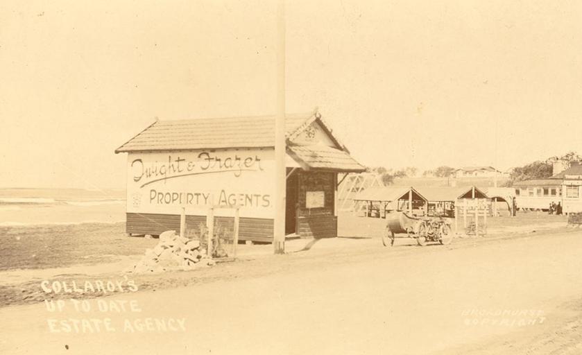 | Keywords: SLNSW 796226 Collaroys Up to Date Estate Agency Dwight amp Frazer Property Agents.jpg Photographs 1073 postcards silver gelatin photoprints b w and hand col ; 8 8 x 14 cm -14 x 8 8 cm ; Ephemera 1 pamphlet William Henry Broadhurst was born at Maitland on 13th August 1855; he died aged 72 on 29 July 1927 He moved to Ashfield Sydney and began employment as a surveyor's assistant working mainly on the south coast of NSW He turned his interest in photography into a business and from around 1900 began to publish postcards Many of the photographs were hand coloured for sale by his daughters To secure his photographs he travelled by train and then walked wherever he wanted to go -- Reference source Illawarra Historical Society Bulletin September 1970 pp 2-3 PXA 635/1071 Presented 1970; Pic Acc 2048 For access to this material please contact the Head of Pictures Section - M A B often appears on the front of Broadhurst postcards The name M Broadhurst also appears on the back of some postcards eg PXA 635/179 The identity and significance of this anomaly is unknown This collection has been arranged by geographical location You may navigate from this collection record to these individual records 796226 Collaroy's Up to Date Estate Agency Dwight Frazer Property Agents Postcards of New South Wales Collaroy New South Wales |