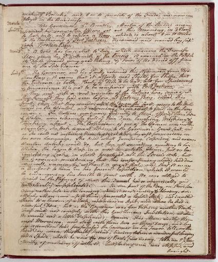 Keywords: SLNSW 811246 p25.jpg Aggregated Collection Textual Records Graphic Materials The First Fleet consisting of 11 vessels was the largest single contingent of ships to sail into the Pacific Ocean Its purpose was to found a convict settlement on the east coast of Australia at Botany Bay ; The First Fleet sailed from England on 13 May 1787 carrying more than 1 500 people and arrived at Botany Bay eight months later on 18 January 1788 Governor Arthur Phillip rejected Botany Bay choosing instead Port Jackson to the north as the sight for the new colony; they arrived on 26 January 1788 The Fleet consisted of two naval escorts HMS Supply and the flagship HMS Sirius carrying the Governor; six convict transports the Alexander Charlotte Friendship Lady Penrhyn Prince of Wales and the Scarborough; and three storeships the Borrowdale Fishburn and Golden Grove This selection comprises ten of the eleven known First Fleet journals including two versions of Philip Gidley King's journal; and correspondence and artworks of First Fleeters First Fleet 1787-1788 ; New South Wales -- History -- 1788-1851 811246 p 25 Journal of George Bouchier Worgan |