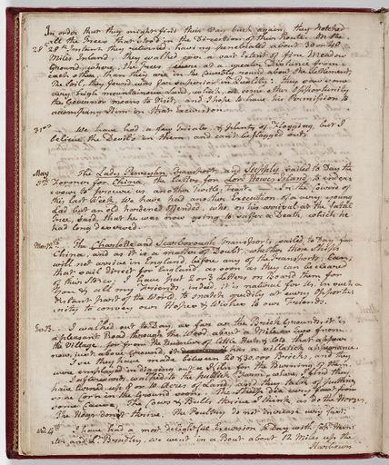 Keywords: SLNSW 811249 p28.jpg Aggregated Collection Textual Records Graphic Materials The First Fleet consisting of 11 vessels was the largest single contingent of ships to sail into the Pacific Ocean Its purpose was to found a convict settlement on the east coast of Australia at Botany Bay ; The First Fleet sailed from England on 13 May 1787 carrying more than 1 500 people and arrived at Botany Bay eight months later on 18 January 1788 Governor Arthur Phillip rejected Botany Bay choosing instead Port Jackson to the north as the sight for the new colony; they arrived on 26 January 1788 The Fleet consisted of two naval escorts HMS Supply and the flagship HMS Sirius carrying the Governor; six convict transports the Alexander Charlotte Friendship Lady Penrhyn Prince of Wales and the Scarborough; and three storeships the Borrowdale Fishburn and Golden Grove This selection comprises ten of the eleven known First Fleet journals including two versions of Philip Gidley King's journal; and correspondence and artworks of First Fleeters First Fleet 1787-1788 ; New South Wales -- History -- 1788-1851 811249 p 28 Journal of George Bouchier Worgan |