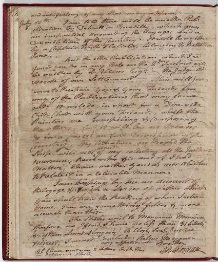 Keywords: SLNSW 811259 p38.jpg Aggregated Collection Textual Records Graphic Materials The First Fleet consisting of 11 vessels was the largest single contingent of ships to sail into the Pacific Ocean Its purpose was to found a convict settlement on the east coast of Australia at Botany Bay ; The First Fleet sailed from England on 13 May 1787 carrying more than 1 500 people and arrived at Botany Bay eight months later on 18 January 1788 Governor Arthur Phillip rejected Botany Bay choosing instead Port Jackson to the north as the sight for the new colony; they arrived on 26 January 1788 The Fleet consisted of two naval escorts HMS Supply and the flagship HMS Sirius carrying the Governor; six convict transports the Alexander Charlotte Friendship Lady Penrhyn Prince of Wales and the Scarborough; and three storeships the Borrowdale Fishburn and Golden Grove This selection comprises ten of the eleven known First Fleet journals including two versions of Philip Gidley King's journal; and correspondence and artworks of First Fleeters First Fleet 1787-1788 ; New South Wales -- History -- 1788-1851 811259 p 38 Journal of George Bouchier Worgan |