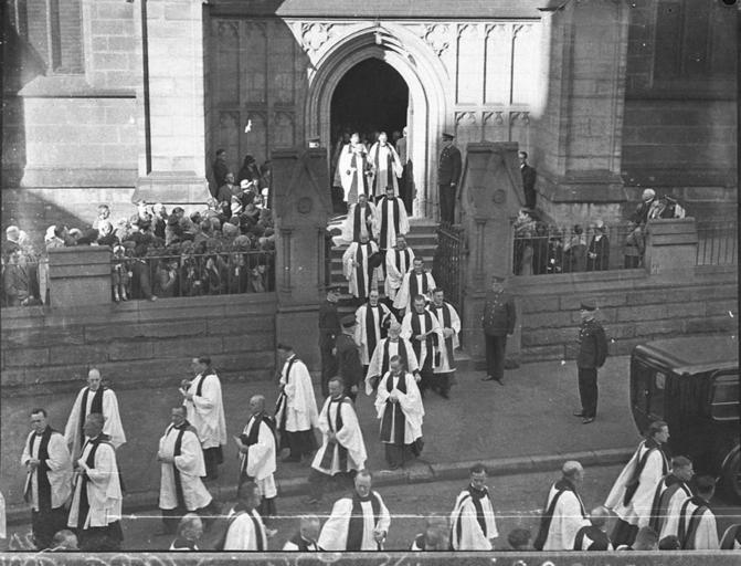 Keywords: SLNSW 82061 Bishop Kirkbys funeral.jpg en Bishop Kirkby's funeral 17/7/1935 http //www acmssearch sl nsw gov au/search/itemDetailPaged cgi itemID 82061 item <br/>http //www acmssearch sl nsw gov au/search/itemDetailPaged cgi itemID 37473 album <br/>http //www acmssearch sl nsw gov au/search/itemDetailPaged cgi itemID 395018 collection Creator Sam Hood This image may be used freely without requesting permission The State Library of New South Wales http //www acmssearch sl nsw gov au/search/itemPopLarger cgi itemID 82061 requests acknowledgement that the image is from the collections of the State Library of NSW Photographs 32812 images copied from glass and cellulose nitrate photonegatives The Library first purchased a large collection of negatives from Gladys Hood in 1972 This collection which included nitrate negatives which have subsequently been copied at DG 0N4 NCY 28-61 was transferred to a videodisc in 1991 and each image indexed individually Ted Hood assisted with the indexing; images were also identified using surviving studio registers The videodisc known as the Home Away disc or simply the Hood collection was digitised in 1996 and mounted on the Internet with upgraded index records via the online catalogue in December 1998 Purchased from Gladys Hood 1972 Copyright restrictions may apply - Photographs in this collection created before 1955 are all out of copyright Photographs created after 1955 are in copyright for the life of creator plus 70 years ; Please acknowledge - Mitchell Library State Library of New South Wales and Courtesy copyright holder 395018 Sam Hood photographic collection 1916-ca 1955 Approximately 44 800 negatives ; 7 309 photographic prints ; 3 boxes of textual material ; 6 film reels The Library first purchased a large collection of negatives from Gladys Hood in 1972 This collection which included nitrate negatives which have subsequently been copied at DG 0N4 NCY 28-61 was transferred to a videodisc in 1991 and each image indexed individually Ted Hood assisted with the indexing; images were also identified using surviving studio registers The videodisc known as the Home Away disc or simply the Hood collection was digitised in 1996 and mounted on the Internet with upgraded index records via the online catalogue in December 1998 ; Another collection from Sam Hood's studio was purchased in 1993 from Gladys Hood's descendants This comprised 7300 photoprints PXE 789 and ca 12000 negatives ON 204 Digitisation of important photographs in PXE 789 began Mar 2002 but ON 204 has not been digitised and must be viewed at the Library Samuel J Hood's 1872-1953 claimed to have been born 1870 but the South Australian Birth Index gives date as 20 August 1872 His career as a photographer began in the 1880s ; He ran a successful business in ships portraits these negatives are now held by the Australian National Maritime Museum Sydney and portraits of people in the late nineteenth - early twentieth century The State Library has little representation of this period In 1918 he acquired the Dalny Studio at 124 Pitt Street and began to expand his business into press photography providing photographs for the Sydney Mail the Australasian the Daily Guardian the Daily Telegraph Pictorial the Labor Daily the Sun the Daily News and the Sydney Morning Herald Press photography increasingly came to dominate his business and in 1934 he joined the Labor Daily for a short time as a full-time photographer engaging other staff to look after his studio ; By the mid-1930s most newspapers employed their own photographers and Hood's commissions from the papers began to decline Hood sought other kinds of commissions and won a number of long term advertising and commercial contracts He contributed a number of photographs of Sydney buildings and streets to Building Construction and Australasian Engineer during the late 1930s and early 1940s Hood also had extensive contacts in the entertainment industry who called upon him to document celebrity events and stars as well as theatre advertising Throughout his career he worked at the stock-in-trade for commercial photographers portraits weddings and even funerals ; A number of photographers worked for Dalny Studio some of these include Ernie Bowen Gus Daley Jack Lazern Lethington Maitland as well as Sam's own children Gladys and Ted ; For detailed biographical information about photographer Sam Hood see Sydney exposures through the eyes of Sam Hood his Studio 1925-1950 / Alan Davies Sydney State Library of New South Wales 1991 Out of copyright - Created before 1955 Photographs ; Please acknowledge - Mitchell Library State Library of New South Wales advertising photography; commercial photography; photojournalism 395018 Original item no NCY34/153 yes no PD-Australia PD-1996 Australia Images from the State Library of NSW album 37473 SLNSW media uploaded by User 99of9 Photographs by Sam Hood |