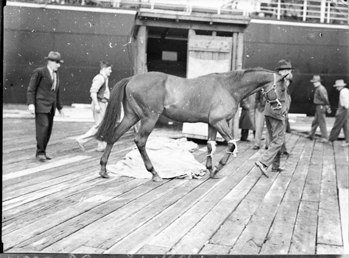 Keywords: SLNSW 82103 Arrival of English horse.jpg en Arrival of English horse 2/7/1935 http //www acmssearch sl nsw gov au/search/itemDetailPaged cgi itemID 82103 item <br/>http //www acmssearch sl nsw gov au/search/itemDetailPaged cgi itemID 37473 album <br/>http //www acmssearch sl nsw gov au/search/itemDetailPaged cgi itemID 395018 collection Creator Sam Hood This image may be used freely without requesting permission The State Library of New South Wales http //www acmssearch sl nsw gov au/search/itemPopLarger cgi itemID 82103 requests acknowledgement that the image is from the collections of the State Library of NSW Photographs 32812 images copied from glass and cellulose nitrate photonegatives The Library first purchased a large collection of negatives from Gladys Hood in 1972 This collection which included nitrate negatives which have subsequently been copied at DG 0N4 NCY 28-61 was transferred to a videodisc in 1991 and each image indexed individually Ted Hood assisted with the indexing; images were also identified using surviving studio registers The videodisc known as the Home Away disc or simply the Hood collection was digitised in 1996 and mounted on the Internet with upgraded index records via the online catalogue in December 1998 Purchased from Gladys Hood 1972 Copyright restrictions may apply - Photographs in this collection created before 1955 are all out of copyright Photographs created after 1955 are in copyright for the life of creator plus 70 years ; Please acknowledge - Mitchell Library State Library of New South Wales and Courtesy copyright holder 395018 Sam Hood photographic collection 1916-ca 1955 Approximately 44 800 negatives ; 7 309 photographic prints ; 3 boxes of textual material ; 6 film reels The Library first purchased a large collection of negatives from Gladys Hood in 1972 This collection which included nitrate negatives which have subsequently been copied at DG 0N4 NCY 28-61 was transferred to a videodisc in 1991 and each image indexed individually Ted Hood assisted with the indexing; images were also identified using surviving studio registers The videodisc known as the Home Away disc or simply the Hood collection was digitised in 1996 and mounted on the Internet with upgraded index records via the online catalogue in December 1998 ; Another collection from Sam Hood's studio was purchased in 1993 from Gladys Hood's descendants This comprised 7300 photoprints PXE 789 and ca 12000 negatives ON 204 Digitisation of important photographs in PXE 789 began Mar 2002 but ON 204 has not been digitised and must be viewed at the Library Samuel J Hood's 1872-1953 claimed to have been born 1870 but the South Australian Birth Index gives date as 20 August 1872 His career as a photographer began in the 1880s ; He ran a successful business in ships portraits these negatives are now held by the Australian National Maritime Museum Sydney and portraits of people in the late nineteenth - early twentieth century The State Library has little representation of this period In 1918 he acquired the Dalny Studio at 124 Pitt Street and began to expand his business into press photography providing photographs for the Sydney Mail the Australasian the Daily Guardian the Daily Telegraph Pictorial the Labor Daily the Sun the Daily News and the Sydney Morning Herald Press photography increasingly came to dominate his business and in 1934 he joined the Labor Daily for a short time as a full-time photographer engaging other staff to look after his studio ; By the mid-1930s most newspapers employed their own photographers and Hood's commissions from the papers began to decline Hood sought other kinds of commissions and won a number of long term advertising and commercial contracts He contributed a number of photographs of Sydney buildings and streets to Building Construction and Australasian Engineer during the late 1930s and early 1940s Hood also had extensive contacts in the entertainment industry who called upon him to document celebrity events and stars as well as theatre advertising Throughout his career he worked at the stock-in-trade for commercial photographers portraits weddings and even funerals ; A number of photographers worked for Dalny Studio some of these include Ernie Bowen Gus Daley Jack Lazern Lethington Maitland as well as Sam's own children Gladys and Ted ; For detailed biographical information about photographer Sam Hood see Sydney exposures through the eyes of Sam Hood his Studio 1925-1950 / Alan Davies Sydney State Library of New South Wales 1991 Out of copyright - Created before 1955 Photographs ; Please acknowledge - Mitchell Library State Library of New South Wales advertising photography; commercial photography; photojournalism 395018 Original item no NCY34/116 yes no PD-Australia PD-1996 Australia Images from the State Library of NSW album 37473 SLNSW media uploaded by User 99of9 Photographs by Sam Hood