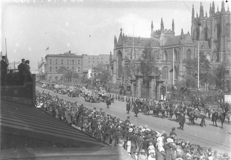 | Keywords: SLNSW 8584 Fivehorsedrawn guncarriage leads State funeral of Governor Sir Walter Davidson from St Andrews Cathedral along George Street.jpg en Five-horse-drawn gun-carriage leads State funeral of Governor Sir Walter Davidson from St Andrews Cathedral along George Street Sep 1923 http //www acmssearch sl nsw gov au/search/itemDetailPaged cgi itemID 8584 item <br/>http //www acmssearch sl nsw gov au/search/itemDetailPaged cgi itemID 37473 album <br/>http //www acmssearch sl nsw gov au/search/itemDetailPaged cgi itemID 395018 collection Creator Sam Hood This image may be used freely without requesting permission The State Library of New South Wales http //www acmssearch sl nsw gov au/search/itemPopLarger cgi itemID 8584 requests acknowledgement that the image is from the collections of the State Library of NSW User 99of9/SLNSW_extra_metadata_template 8584 Five-horse-drawn gun-carriage leads State funeral of Governor Sir Walter Davidson from St Andrews Cathedral along George Street Home and Away - 7743 Sep 1923 Photographs 32812 images copied from glass and cellulose nitrate photonegatives The Library first purchased a large collection of negatives from Gladys Hood in 1972 This collection which included nitrate negatives which have subsequently been copied at DG 0N4 NCY 28-61 was transferred to a videodisc in 1991 and each image indexed individually Ted Hood assisted with the indexing; images were also identified using surviving studio registers The videodisc known as the Home Away disc or simply the Hood collection was digitised in 1996 and mounted on the Internet with upgraded index records via the online catalogue in December 1998 Purchased from Gladys Hood 1972 Copyright restrictions may apply - Photographs in this collection created before 1955 are all out of copyright Photographs created after 1955 are in copyright for the life of creator plus 70 years ; Please acknowledge - Mitchell Library State Library of New South Wales and Courtesy copyright holder 395018 Sam Hood photographic collection 1916-ca 1955 Approximately 44 800 negatives ; 7 309 photographic prints ; 3 boxes of textual material ; 6 film reels The Library first purchased a large collection of negatives from Gladys Hood in 1972 This collection which included nitrate negatives which have subsequently been copied at DG 0N4 NCY 28-61 was transferred to a videodisc in 1991 and each image indexed individually Ted Hood assisted with the indexing; images were also identified using surviving studio registers The videodisc known as the Home Away disc or simply the Hood collection was digitised in 1996 and mounted on the Internet with upgraded index records via the online catalogue in December 1998 ; Another collection from Sam Hood's studio was purchased in 1993 from Gladys Hood's descendants This comprised 7300 photoprints PXE 789 and ca 12000 negatives ON 204 Digitisation of important photographs in PXE 789 began Mar 2002 but ON 204 has not been digitised and must be viewed at the Library Samuel J Hood's 1872-1953 claimed to have been born 1870 but the South Australian Birth Index gives date as 20 August 1872 His career as a photographer began in the 1880s ; He ran a successful business in ships portraits these negatives are now held by the Australian National Maritime Museum Sydney and portraits of people in the late nineteenth - early twentieth century The State Library has little representation of this period In 1918 he acquired the Dalny Studio at 124 Pitt Street and began to expand his business into press photography providing photographs for the Sydney Mail the Australasian the Daily Guardian the Daily Telegraph Pictorial the Labor Daily the Sun the Daily News and the Sydney Morning Herald Press photography increasingly came to dominate his business and in 1934 he joined the Labor Daily for a short time as a full-time photographer engaging other staff to look after his studio ; By the mid-1930s most newspapers employed their own photographers and Hood's commissions from the papers began to decline Hood sought other kinds of commissions and won a number of long term advertising and commercial contracts He contributed a number of photographs of Sydney buildings and streets to Building Construction and Australasian Engineer during the late 1930s and early 1940s Hood also had extensive contacts in the entertainment industry who called upon him to document celebrity events and stars as well as theatre advertising Throughout his career he worked at the stock-in-trade for commercial photographers portraits weddings and even funerals ; A number of photographers worked for Dalny Studio some of these include Ernie Bowen Gus Daley Jack Lazern Lethington Maitland as well as Sam's own children Gladys and Ted ; For detailed biographical information about photographer Sam Hood see Sydney exposures through the eyes of Sam Hood his Studio 1925-1950 / Alan Davies Sydney State Library of New South Wales 1991 Out of copyright - Created before 1955 Photographs ; Please acknowledge - Mitchell Library State Library of New South Wales advertising photography; commercial photography; photojournalism 395018 Original item no DG ON4/7743 yes no PD-Australia PD-1996 Australia Images from the State Library of NSW album 37473 SLNSW media uploaded by User 99of9 Photographs by Sam Hood |