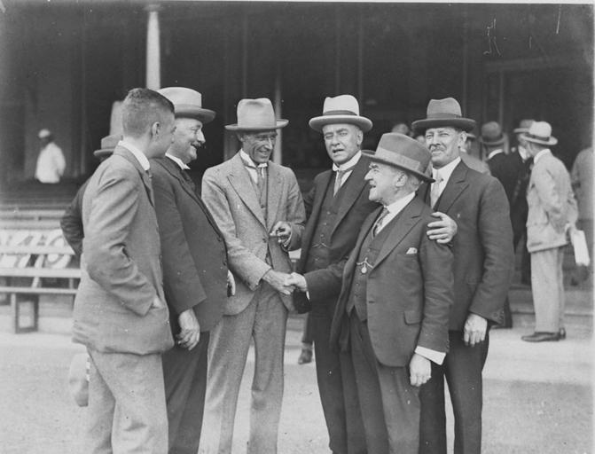 Keywords: SLNSW 9346 Six unidentified men greet each other They are probably cricket officials Ted Hood 2041988.jpg en Six unidentified men greet each other They are probably cricket officials Ted Hood 20/4/1988 There is a '1940' sign at back http //www acmssearch sl nsw gov au/search/itemDetailPaged cgi itemID 9346 item <br/>http //www acmssearch sl nsw gov au/search/itemDetailPaged cgi itemID 37473 album <br/>http //www acmssearch sl nsw gov au/search/itemDetailPaged cgi itemID 395018 collection Creator Sam Hood This image may be used freely without requesting permission The State Library of New South Wales http //www acmssearch sl nsw gov au/search/itemPopLarger cgi itemID 9346 requests acknowledgement that the image is from the collections of the State Library of NSW User 99of9/SLNSW_extra_metadata_template 9346 Six unidentified men greet each other They are probably cricket officials Ted Hood 20/4/1988 Home and Away - 5410 There is a '1940' sign at back Photographs 32812 images copied from glass and cellulose nitrate photonegatives The Library first purchased a large collection of negatives from Gladys Hood in 1972 This collection which included nitrate negatives which have subsequently been copied at DG 0N4 NCY 28-61 was transferred to a videodisc in 1991 and each image indexed individually Ted Hood assisted with the indexing; images were also identified using surviving studio registers The videodisc known as the Home Away disc or simply the Hood collection was digitised in 1996 and mounted on the Internet with upgraded index records via the online catalogue in December 1998 Purchased from Gladys Hood 1972 Copyright restrictions may apply - Photographs in this collection created before 1955 are all out of copyright Photographs created after 1955 are in copyright for the life of creator plus 70 years ; Please acknowledge - Mitchell Library State Library of New South Wales and Courtesy copyright holder 395018 Sam Hood photographic collection 1916-ca 1955 Approximately 44 800 negatives ; 7 309 photographic prints ; 3 boxes of textual material ; 6 film reels The Library first purchased a large collection of negatives from Gladys Hood in 1972 This collection which included nitrate negatives which have subsequently been copied at DG 0N4 NCY 28-61 was transferred to a videodisc in 1991 and each image indexed individually Ted Hood assisted with the indexing; images were also identified using surviving studio registers The videodisc known as the Home Away disc or simply the Hood collection was digitised in 1996 and mounted on the Internet with upgraded index records via the online catalogue in December 1998 ; Another collection from Sam Hood's studio was purchased in 1993 from Gladys Hood's descendants This comprised 7300 photoprints PXE 789 and ca 12000 negatives ON 204 Digitisation of important photographs in PXE 789 began Mar 2002 but ON 204 has not been digitised and must be viewed at the Library Samuel J Hood's 1872-1953 claimed to have been born 1870 but the South Australian Birth Index gives date as 20 August 1872 His career as a photographer began in the 1880s ; He ran a successful business in ships portraits these negatives are now held by the Australian National Maritime Museum Sydney and portraits of people in the late nineteenth - early twentieth century The State Library has little representation of this period In 1918 he acquired the Dalny Studio at 124 Pitt Street and began to expand his business into press photography providing photographs for the Sydney Mail the Australasian the Daily Guardian the Daily Telegraph Pictorial the Labor Daily the Sun the Daily News and the Sydney Morning Herald Press photography increasingly came to dominate his business and in 1934 he joined the Labor Daily for a short time as a full-time photographer engaging other staff to look after his studio ; By the mid-1930s most newspapers employed their own photographers and Hood's commissions from the papers began to decline Hood sought other kinds of commissions and won a number of long term advertising and commercial contracts He contributed a number of photographs of Sydney buildings and streets to Building Construction and Australasian Engineer during the late 1930s and early 1940s Hood also had extensive contacts in the entertainment industry who called upon him to document celebrity events and stars as well as theatre advertising Throughout his career he worked at the stock-in-trade for commercial photographers portraits weddings and even funerals ; A number of photographers worked for Dalny Studio some of these include Ernie Bowen Gus Daley Jack Lazern Lethington Maitland as well as Sam's own children Gladys and Ted ; For detailed biographical information about photographer Sam Hood see Sydney exposures through the eyes of Sam Hood his Studio 1925-1950 / Alan Davies Sydney State Library of New South Wales 1991 Out of copyright - Created before 1955 Photographs ; Please acknowledge - Mitchell Library State Library of New South Wales advertising photography; commercial photography; photojournalism 395018 Original item no DG ON4/5410 yes no PD-Australia PD-1996 Australia Images from the State Library of NSW album 37473 SLNSW media uploaded by User 99of9 Photographs by Sam Hood |
