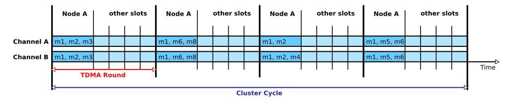 Keywords: Slot and node Wiki TTP.svg en This figure explains what a frame message slot TDMA round and a cluster cycle within a time-triggered protocol is de Diese Grafik erklärt was die Begriffe Frame Message Slot TDMA round und Cluster cycle innerhalb des zeitkritischen Protokolls TTP bedeuten Own Runtux 2009-04-10 File Slot_and_node_Wiki_TTP png re-drawn from File Slot_and_node_Wiki_TTP png SVG Computer networks Cluster diagrams TDMA |