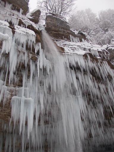 Keywords: slovenia landscape winter snow ice icicles waterfall cascade frozen forest trees woods nature outside country countryside rocks cliff