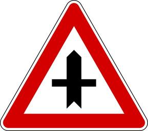 Keywords: Slovenia road sign I-27.svg en Crossing with minor road sl Križišče s stransko cesto pod pravim kotom 2014-05-10 Highway Code Government of Slovenia PD-Slovenia-exempt Diagrams of road signs of Slovenia