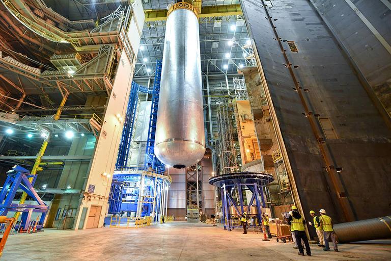 Keywords: SLS Liquid Hydrogen Fuel Tank.jpg en SLS EM1 LH2 tank moves to Cell A 2016-09-26 12 02 37 https //www nasa gov/exploration/systems/sls/index html NASA Boeing other versions cc-zero Space Launch System