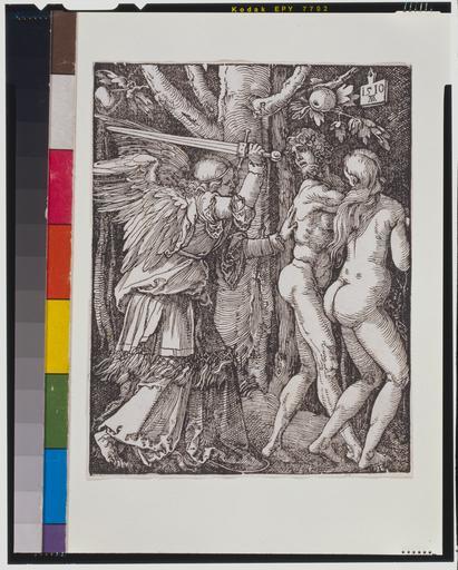 | Keywords: Small Passion. The Expulsion from Paradise WDL2684.png Artwork ru Дю е Альб ехт 1471-1528 fr Dürer Albrecht 1471-1528 en Dürer Albrecht 1471-1528 zh 勒 阿尔布雷希特 1471-1528 pt Dürer Albrecht 1471-1528 ar دورير البريخت 1471-1528 es Durero Alberto 1471-1528 ru алые ст асти Изгнание из Рая fr Petite Passion L'expulsion du paradis en Small Passion The Expulsion from Paradise zh 情四溢 出乐园 pt Pequena Paixão A Expulsão do Paraíso ar الآلام الصغير الطرد من الجنة ru Альб ехт Дю е 1471-1528 гг считается величайшим художником Ге мании Он был не только одной из наиболее выдающихся фигу ев опейского искусства изготовления г авю но также и художником и авто ом важных анних т удов посвященных художественной тео ии и таким темам как геомет ия пе спектива и п опо ции человеческого тела Большая часть его абот была посвящена елигиозным темам С анней молодости когда ему было чуть больше 20 лет и до самой сме ти в воз асте 57 лет Дю е аботал над шестью азными ве сиями аботы посвященной ст астям Господним исто ии мучений Х иста после Тайной вече и вплоть до Его аспятия Данное изоб ажение Адама и Евы изгоняемых мечом из айского сада входит в его аботу <i> алые ст асти </i>в кото ую включены т идцать шесть сцен из библейских сюжетов есмот я на небольшие азме ы этой аботы ее динамичная композиция п идает ей мощное з ительное воздействие и силу повествования В ве хнем п авом углу аботы п иводится отличительный вензель Дю е а и п оставлена дата 1510 год <br>Адам библейский пе сонаж ; Аллего ия; Эдем; Ева библейский пе сонаж ; Г авю ы на де еве fr Albrecht Dürer 1471-1528 est généralement considéré comme le plus grand artiste d'Allemagne En plus d'être l'une des figures monumentales de l'histoire de la gravure occidentale il fut un peintre important et écrivit des ouvrages pionniers de théorie artistique traitant de sujets tels que la géométrie la perspective et les mesures du corps humain Une grande partie de son œuvre était religieuse Depuis ses 20 ans jusqu'à sa mort à l'âge de 57 ans Dürer travailla sur au moins six différentes versions de la passion - l'histoire de la passion du Christ entre la dernière Cène et la Crucifixion Cette image d'Adam et Eve chassés du paradis à la pointe de l'épée est issue de sa <i>Petite Passion</i> qui contient trente-six extraits de la Bible En dépit de son échelle réduite la composition dynamique de l'œuvre lui donne une puissante force narrative et visuelle Dans le coin supérieur droit le travail est signé du monogramme distinctif de Dürer et daté de 1510 <br>Adam Figure biblique ; Allégorie; Éden; Eve Figure biblique ; Gravures sur bois en Albrecht Dürer 1471-1528 is generally considered Germany s greatest artist In addition to being one of the monumental figures in the history of Western printmaking he was a painter and wrote important early works of artistic theory dealing with such topics as geometry perspective and the measurements of the human body Much of his work was religious From his early 20s until his death at the age of 57 Dürer worked on at least six different versions of the Passion--the story of Christ's suffering between the Last Supper and the Crucifixion This image of Adam and Eve being driven out of Paradise at sword point is from his <em>Small Passion</em> which contains thirty-six episodes from the Bible Despite its small scale the dynamic composition of the work gives it a powerful visual and narrative force In the upper right the work is signed with Dürer s distinctive monogram and dated 1510 <br>Adam Biblical figure ; Allegory; Eden; Eve Biblical figure ; Woodcuts zh 阿尔布雷特·丢勒(1471-1528 年)是人们公认的 伟大的德国艺 家 他是西方版画史上的不 伟人之 , 且还是 位画家,并著 关几何 视角和人体测量等艺 理论方 的重要早 品 他的很多 品都与宗教 关 他从刚过 20 岁到 57 岁去世 间,共创 了至少六个不同版 的 稣受难记 稣 后的晚餐和被钉死 十字架上之间的受难故事 这幅亚当和夏娃被迫驱 出伊甸园的图片出自他创 的 <i> 小受难 Small Passion </i>,该 品共包含 经中 36 个章节的故事 尽管其尺寸很小,但是该 品的动 布 能给人以强烈的视觉和叙事效 该 品的右上角签 丢勒特 的字母组合签名,并注 年份 1510 年 <br>亚当( 经人物); 寓意; 伊甸园; 夏娃( 经人物); 刻 pt Albrecht Dürer 1471-1528 é geralmente considerado o maior artista da Alemanha Além de ser uma das figuras monumentais da história da gravura ocidental ele foi um pintor e escreveu importantes obras sobre teoria da arte lidando com tópicos tais como geometria perspectiva e as medidas do corpo humano Muito do seu trabalho era religioso Do começo dos seus 20 anos até sua morte aos 57 anos de idade Dürer trabalhou em pelo menos seis versões diferentes da Paixão -- a história do sofrimento de Cristo entre a Última Ceia e a Crucificação Esta imagem de Adão e Eva sendo expulsos do Paraíso sob a ameaça da espada é da sua obra <i>Pequena Pai
