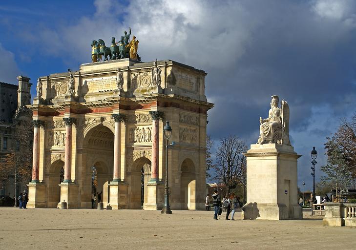 Keywords: small triumphal arch napoleon history gloria the glory of the architecture ornaments sculptures reliefs the quadriga monument france city paris duplication imitation building memory honor culture