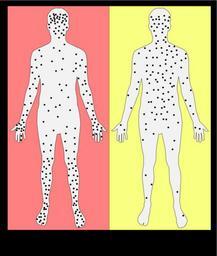 Keywords: Smallpox versus chickenpox neutral plain.svg Rash distribution early rash smallpox versus chickenpox en Image on left shows approximate distribution of smallpox rash Image on right shows approximate distribution of chickenpox rash Smallpox_versus_chickenpox_english_plain svg 2011-01-27 22 46 UTC Smallpox_versus_chickenpox_english_plain svg Smallpox_ variola_orthopox_virus_ _Early_Rash_vs_chickenpox gif Author Human_body_silhouette svg Upper_body_front png Mikael Häggström Background made transparent by Frédéric MICHEL for Graphic Lab fr derivative work RexxS <span class signature-talk >talk</span> derivative work Brammers <span class signature-talk >talk</span> derivative work Brammers <span class signature-talk >talk</span> Removed caption Brammers Smallpox_versus_chickenpox_english_plain svg own Brammers 2011-01-27 Permission </nowiki> Uploaded with derivativeFX Files by -Strogoff- Chickenpox Illustrations of smallpox |