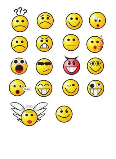 Keywords: smileys set yellow happy unhappy devil angel lol laughing wink angry crazy love hearts smirk grin