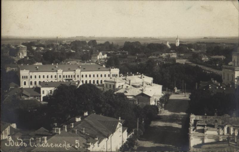 Keywords: Smolensk view 5.jpg en View of the central part of Smolensk On the right are seen Molohovskie gate ru Вид цент альной части Смоленска Сп ава видны олоховские во ота О игинальная отк ытка е установлены before 1917 года PD-RusEmpire 20th-century postcards of Russia Postcards of Smolensk