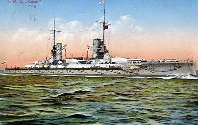 Keywords: SMS Kaiser - postcard.jpg en Postcard dated 11 5 1914 Title S M S Kaiser de Postkarte datiert 11 5 1914 Titel S M S Kaiser private collection of Wolfgang Sauber Xenophon anonymous 03 11 2008 PD-1923 anonymous-EU Old military postcards of Germany SMS Kaiser ship 1912 Postcards of ships of Germany |