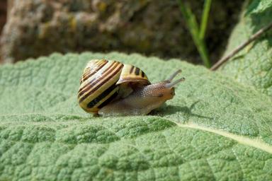Keywords: snail garden shell nature animal slowly move spiral leaf mollusk
