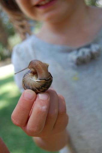 Keywords: snail girl hand child little mollusk slimy fingers bug insect nature shell