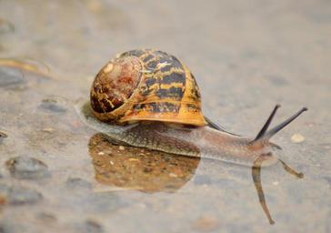 Keywords: snail insect nature rain burgundy shell snail insect nature rain shell puddle water fall weather little grey