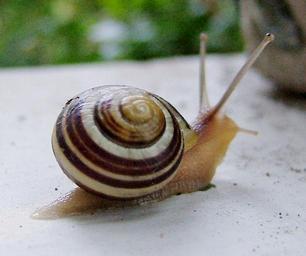 Keywords: Snail on railing.jpg Photo of a land snail on a deck railing found in Mount Vernon Washington USA Shell is about 1/2 inch 13 mm wide I think it may be a Grovesnail Cepaea nemoralis but I'm not sure Can anyone identify it Alterations to image cropped and brightened slightly with Gimp image editor own 2009-09-23 Chetvorno Chris Burks I the author Chris Burks release this image to the public domain for any use whatever Cepaea Unidentified Helicidae |