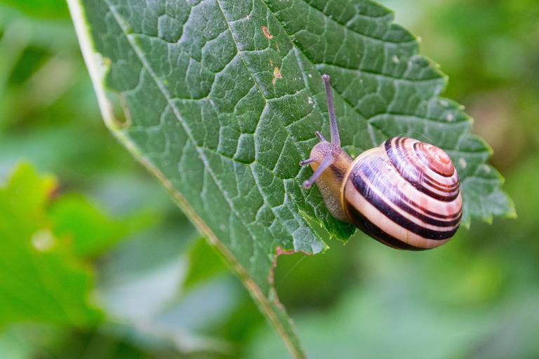 Keywords: snail shell mollusk crawl slowly animal leaf