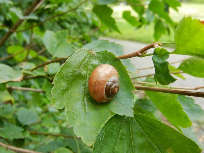 Keywords: snail winniczek crawl animal nature rain horns seashell tree leaf green foliage