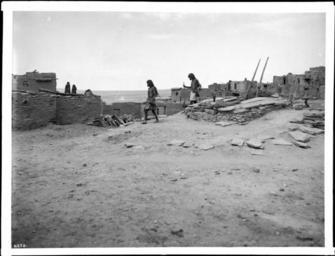| Keywords: Snake priests out at sunrise to hunt for ceremonial snakes on first day of Snake Dance Ceremony at the pueblo of Oraibi, Arizona, 1898 (CHS-4658).jpg en <br> Snake priests out at sunrise to hunt for ceremonial snakes on first day of Snake Dance Ceremony at the pueblo of Oraibi Arizona 1898 Photograph of two Hopi snake priests out at sunrise to hunt for ceremonial snakes on the first day of the Snake Dance Ceremony at the pueblo of Oraibi Arizona 1898 The priests wear skirts and moccasins A ladder sticks out of the subterranean kiva in the low mound The multi-tiered dwellings of the pueblo are visible at right The silhouettes of two other people can be seen at left towards the background The flat desert is visible in the distant background Call number CHS-4658 Legacy record ID chs-m16981; USC-1-1-1-13888 Photographer James George Wharton Filename CHS-4658 Coverage date 1898 Part of collection California Historical Society Collection 1860-1960 Type images Geographic subject city or populated place Oraibi Repository name USC Libraries Special Collections Accession number 4658 Microfiche number 1-170- Archival file chs_Volume97/CHS-4658 tiff Part of subcollection Title Insurance and Trust and C C Pierce Photography Collection 1860-1960 Repository address Doheny Memorial Library Los Angeles CA 90089-0189 Geographic subject country USA Format aacr2 3 photographs glass photonegative photoprints b w ; 17 x 22 cm 21 x 26 cm Rights Digitally reproduced by the USC Digital Library; From the California Historical Society Collection at the University of Southern California Subject adlf tribal areas Project USC Repository email specol usc edu Identifying number unidentified no James-345 Contributing entity California Historical Society Date created 1898 Publisher of the digital version University of Southern California Libraries Format aat photographic prints; photographs Geographic subject state Arizona Subject file heading Indians -- Hopi -- Snake Dance Geographic coordinates -110 639717 35 876389; -110 639442 35 876389; -110 639442 35 874722; -110 639717 35 874722; -110 639717 35 876389 Format glass plate negatives Access conditions Send requests to address or e-mail given Phone 213 821-2366; fax 213 740-2343 Geographic subject county Navajo Subject lcsh Indians of North America; Hopi Indians; Rites and ceremonies Subject Hopi Snake Dance Ceremony 1898 date created George Wharton James 1858 1923 http //digitallibrary usc edu/cdm/ref/collection/p15799coll65/id/16900 PD-old-70-1923 Images from USC Digital Library uploaded by Fæ Photographs by George Wharton James California Historical Society Collection 1860-1960 Glass plate negatives |