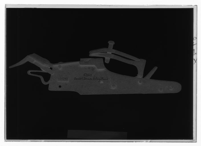 Keywords: Snapplås, springlås, utfjäderslås, Sverige, 1600-talets början - Livrustkammaren - 61381-negative.tif Snapplås av stål med plant kantigt låsbleck bakåt utdraget till en smalare avrundad spets Vinkelböjd hane av svensk typ med lång lös inlaxad överkäke Lång hanfot med spår av inlagd koppartråd Droppformig studel med försänkt spår längs mitten Kombinerad eldståls- och slagfjäder nedböjd i båge vid hanfoten och framför låsblecket Kantig fängpanna med skålformig gavel med två tvärrränder längs överkanten och därnedanför radiella filade spår runt kanten Plant fängpannelock med fjäderbelastat omvändningseldstål original caption early other date century 17 steel e2 - eldvapen - lås material stål g 630 size mm 240 108 LRK Made in Sweden 2003 place of origin original filename LN_B11697_014577 38580 inventory number LRK 3699 61381 CC0 Snapplås springlås utfjäderslås Sverige 1600-talets början - Livrustkammaren - 61381 tif <gallery caption Different images of same object > File Snapplås springlås utfjäderslås Sverige 1600-talets början - Livrustkammaren - 78504 tif File Snapplås springlås utfjäderslås Sverige 1600-talets början - Livrustkammaren - 1456 tif File Snapplås springlås utfjäderslås Sverige 1600-talets början - Livrustkammaren - 10016 tif </gallery> |