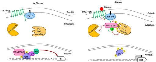 | Keywords: Snf3 img1.png Snf3 /Rgt2-singalling pathway In absence of glucose repressing complex composed of Rgt1 Mth1/Std1 Cyc8 and Tup1 blocks transcription of HXT genes When glucose Glu is present casein kinase is activated and phosphorylates Mth1/Std1 which is subsequently ubiquitinated and degraded by the proteasome allowing transcription to proceed own based on FEMS Microbiology Reviews Vol 32 4 Pages 673-704 2009-06-16 Cellular Biochemistry II talk diagram Cellular Biochemistry II en Original upload log en wikipedia For the Common Good page en wikipedia Snf3_img1 png wikitable - 11 19 16 June 2009 2 362 × 934 915 261 bytes Cellular Biochemistry II w en <nowiki> Snf3/Rgt2-singalling pathway In absence of glucose repressing complex composed of Rgt1 Mth1/Std1 Cyc8 and Tup1 blocks transcription of HXT genes When glucose Glu is present casein kinase is activated and phosphorylat </nowiki> Biochemistry Biology diagrams Fungal biochemistry |