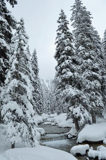Keywords: snow alps haute-savoie winter landscape mountain ski winter landscape nature high alps white france snowy courchevel les 3 vallées fir sky clouds torrent water