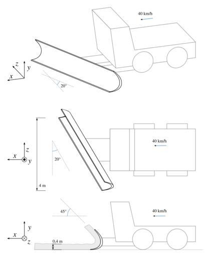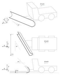 Keywords: Snow blade truck conceptual drawing.svg en A simple drawing of a snow blade truck with angles and coordinates for use in a mechanics exercise whose objective is the calculation of forces exerted by the deflection of the snow 2015-04 own Olivier Cleynen other versions cc-zero SVG physics Uploaded with UploadWizard Snowplows |