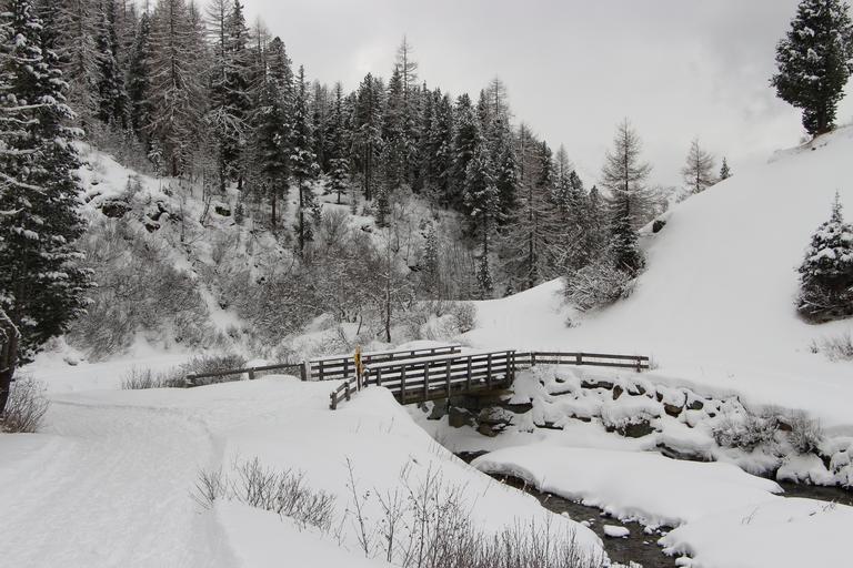 Keywords: snow mountain river bridge winter alpine austria trees nature
