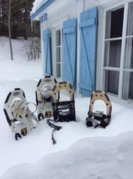 Keywords: snow shoes snow relax winter outdoor cold season travel fashion vacation holiday snowshoeing white blue shutters cottage ski chalet fun christmas joy outside trekking active cold