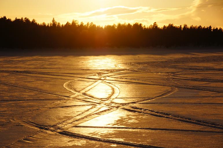 Keywords: snow traces sunset abendstimmung snow lane winter mood snow landscape