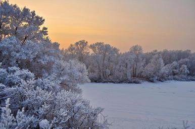 Keywords: snow trees sunset winter christmas branches cold evening